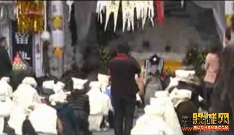 灵堂前,一位中年男子痛哭流涕念着追悼词,两旁站着戴白花的年轻男女。念毕,中年男子和两旁站立者一起向灵堂下跪磕头。近日,网友上传一段视频称,横山县一家医院因治死病人,院长披麻戴孝带领全体医护人员集体作检讨。